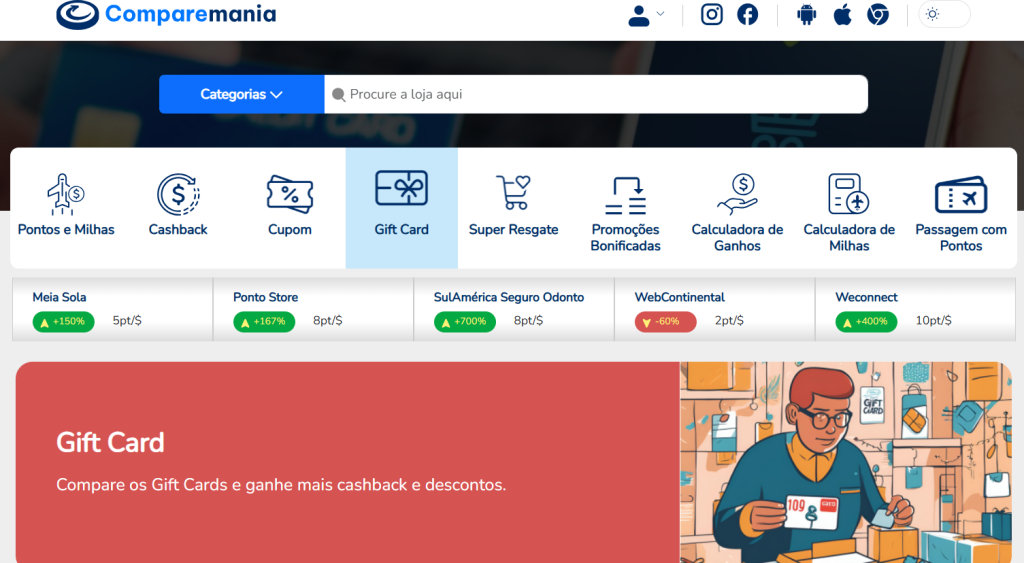 De tal maneira que você acompanha de perto todo o histórico de ganhos de milhas, cashback e pontos de uma loja especifica, assim você pode ver se realmente vale a pena ou não. Essa funcionalidade permite planejar suas compras e viagens com muito mais estratégia.