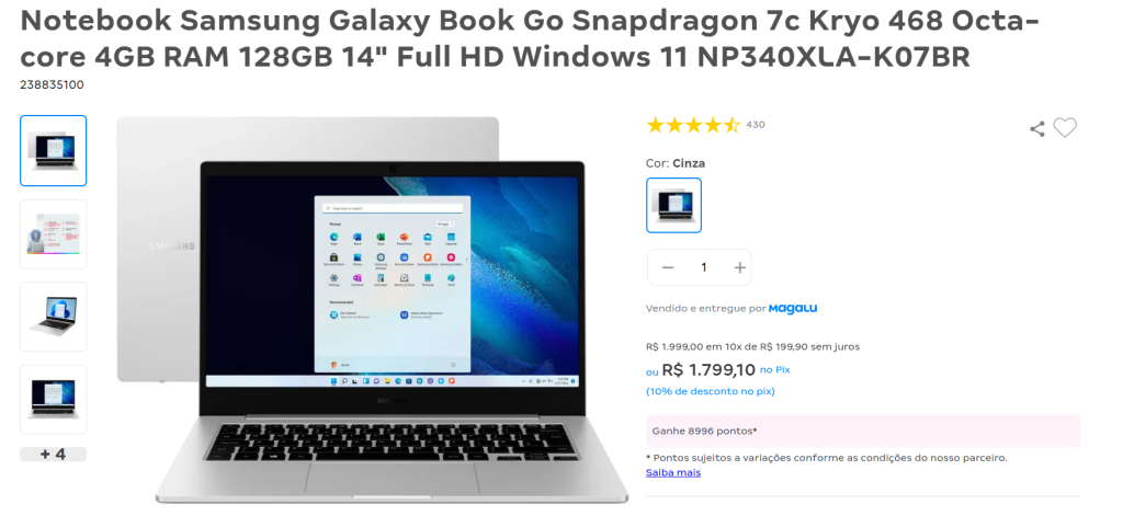 - Desse modo, com a compra desse notebook você acumularia 10.794 pontos (Clube Esfera).