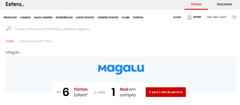 - 6 pontos Esfera por real gasto para clientes do Clube Esfera;