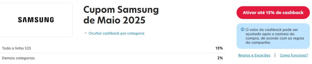 - A Samsung tem até 10 dia(s) para avisar a Méliuz e o dinheiro aparecer no seu saldo como pendente