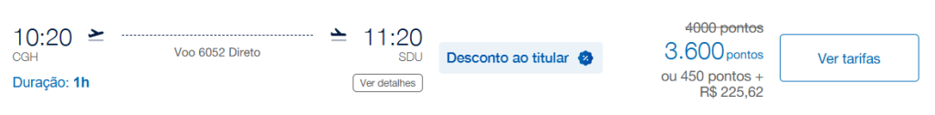 Com apenas 3.600 pontos de milhas aéreas você pode emitir uma passagem aérea de São Paulo – CGH para Rio de Janeiro – SDU, somente pagando algumas tarifas, ou seja, com essa compra é possível garantir os pontos necessários para emitir a passagem.