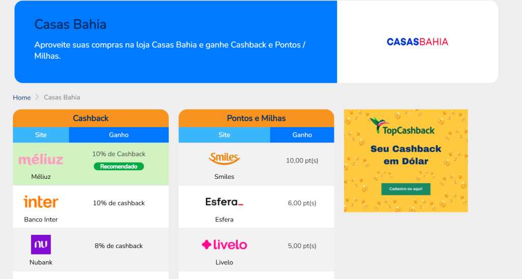- Uma mesma loja pode estar com 10% de cashback em algum programa de fidelidade.