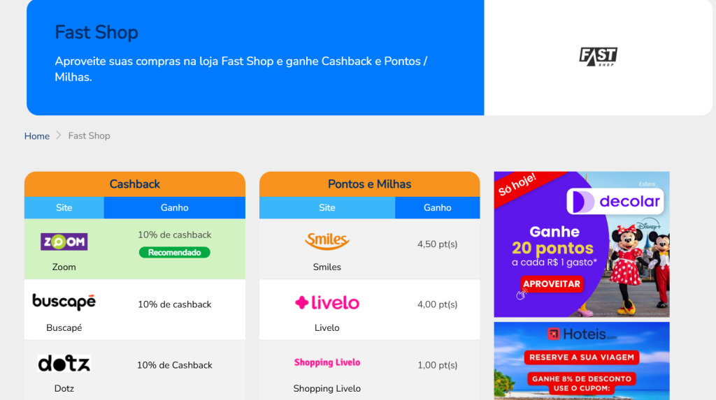 - Uma mesma loja pode estar com 7% de cashback em algum programa de fidelidade.