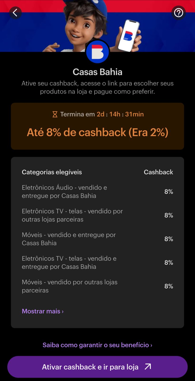 - Atenção às regras de devoluções: Caso haja devolução ou troca do produto, é provável que o valor de cashback seja cancelado.