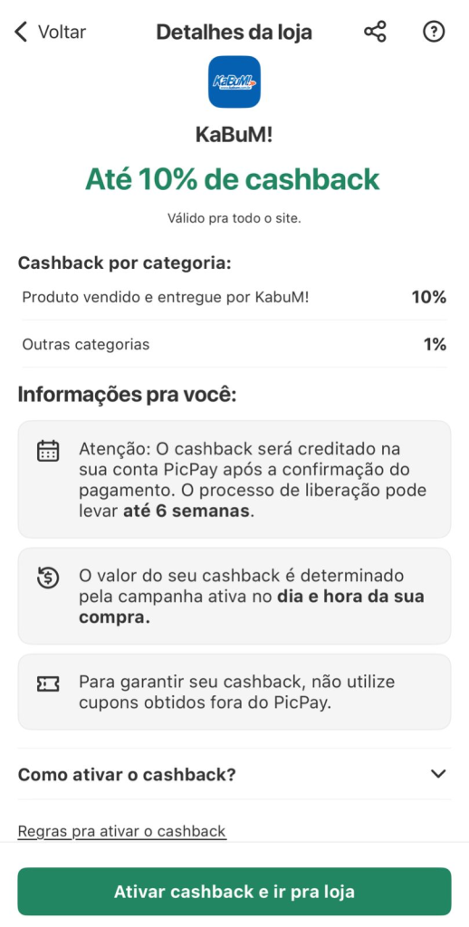- Uso de cupons externos: Isso inclui vales-compras ou outras promoções que não sejam do próprio PicPay e que podem anular o cashback.