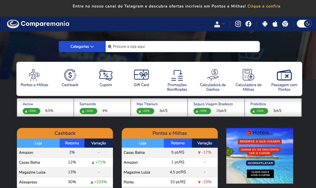 Acesse o nosso Instagram: Comparemania. Já que, lá, esclarecemos dúvidas sobre os mais diversos assuntos relacionados ao mundo de Milhas e Cashback e divulgamos promoções imperdíveis.