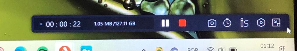 4. Para parar de gravar a tela abra o mesmo menu e aperte no botão que vai estar como o ícone de um quadrado ou pressione Windows + Alt + R