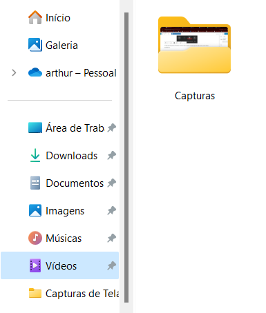 5. A gravação vai ser armazenada nos arquivos, em uma pasta escrito “Capturas” dentro da seção de “Vídeos”.
