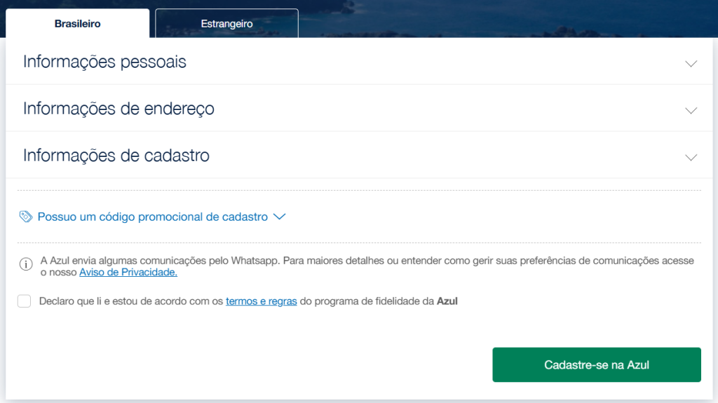 Um e-mail com link de confirmação será enviado. Clique nele e pronto — agora você faz parte do Azul Fidelidade!