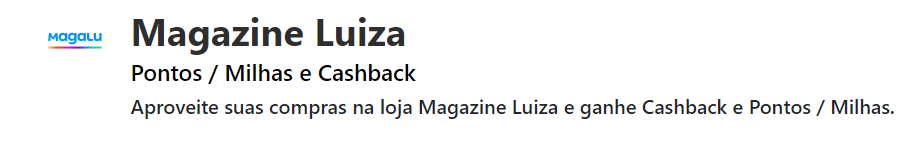 Passo 1: Acesse a Comparemania e veja a melhor pontuação https://www.comparemania.com.br/promocao/cashback/magazine-luiza.