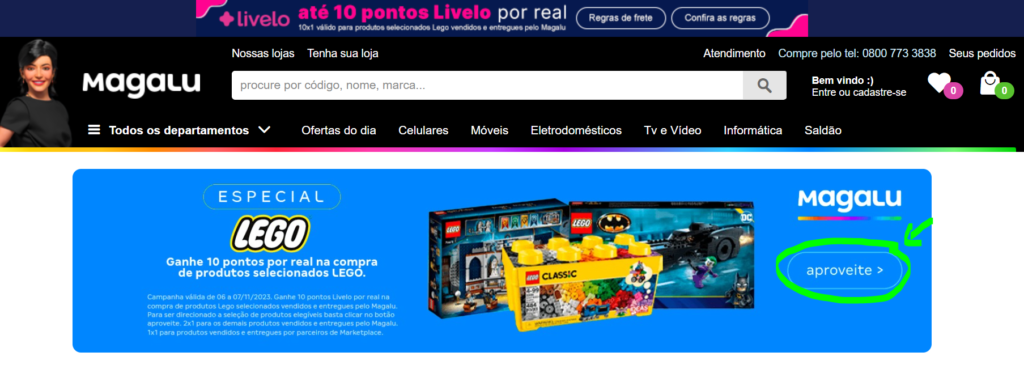 Passo 4: Clique do Banner dentro do site da Magalu e escolha os produtos desejados