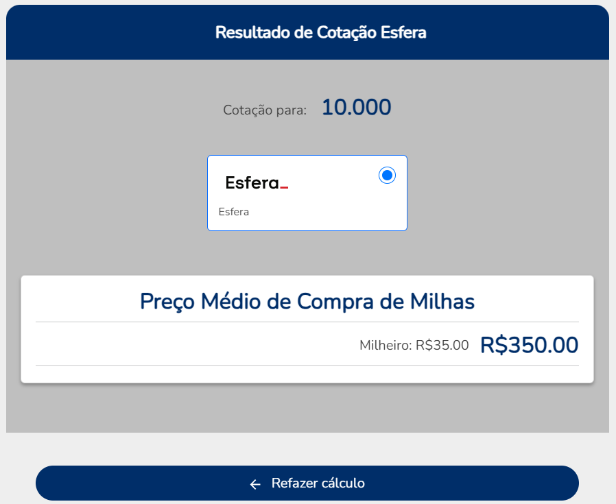 Imagine que você tem 10.000 pontos no programa Esfera. Ao inserir essa quantidade na calculadora, você descobrirá o valor em reais dessas pontos/milhas.