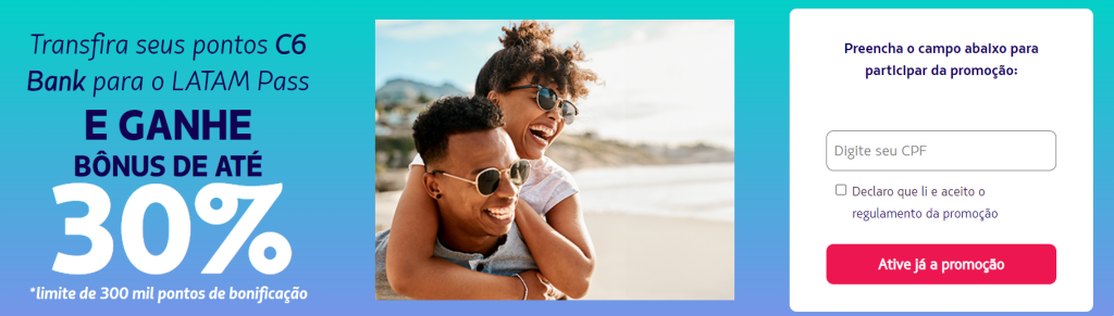 Esse é um exemplo de uma transferência bonificada entre o banco BankC6 e o programa LATAM Pass que todos os dias informamos para você, nosso comparador.