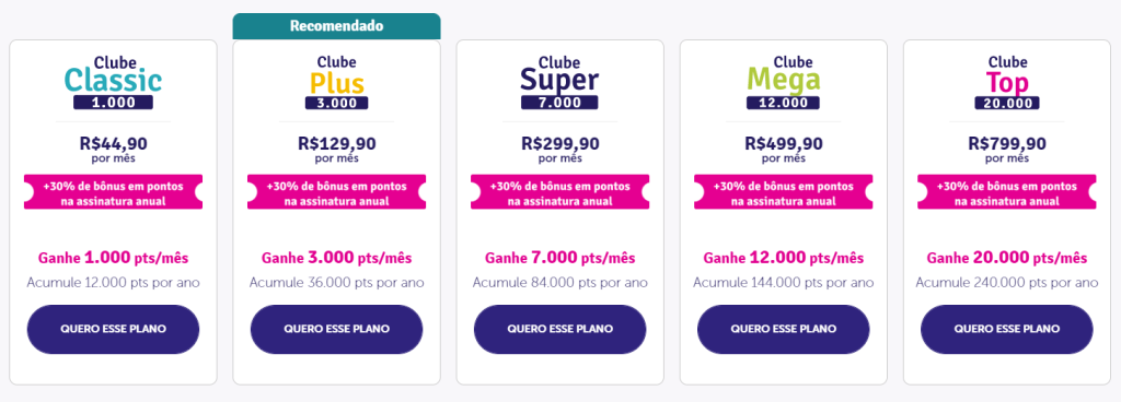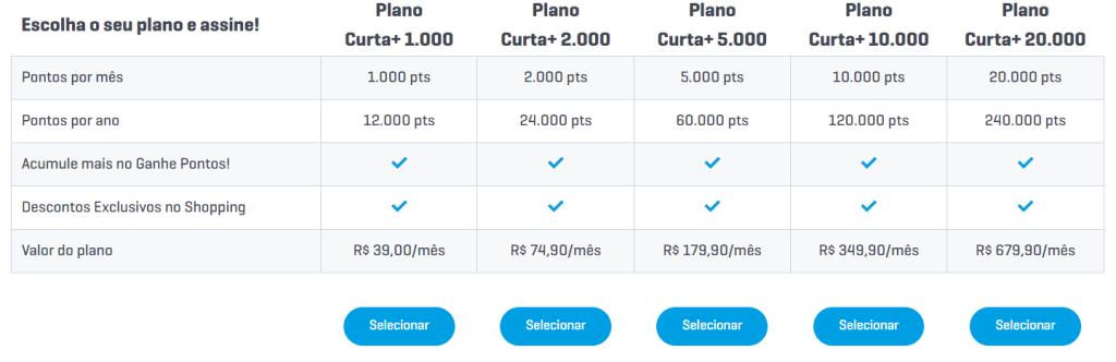 O mais importante, que na comparação do plano 20.000 pontos, que o Clube Curtaí sai na frente com um valor mensal de R$ 679,90/mês frente ao clube da Livelo, que sai com um valor de R$ 799,90/mês. Uma diferença de R$ 120,00 mais barato o Curtaí.