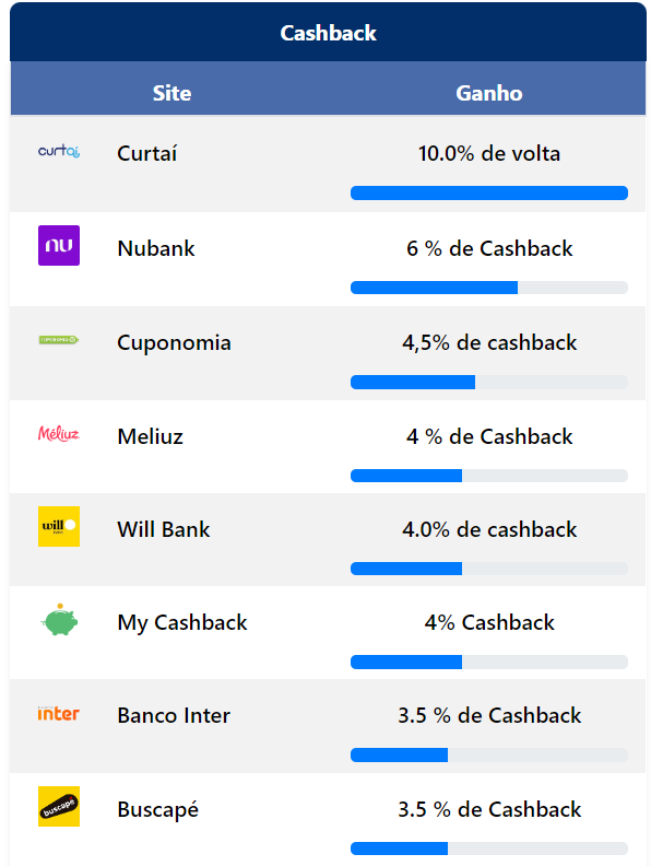 Ganho: pontos por real gasto. Nesse caso o Curtaí está possibilitando ganhar 2 pontos a cada R$ 1,00 (um real) gasto nas compras online do shopping no Programa de Pontos do BRB (Curtaí), ou ainda é possível ganhar 10% de cashback (Dinheiro de volta).