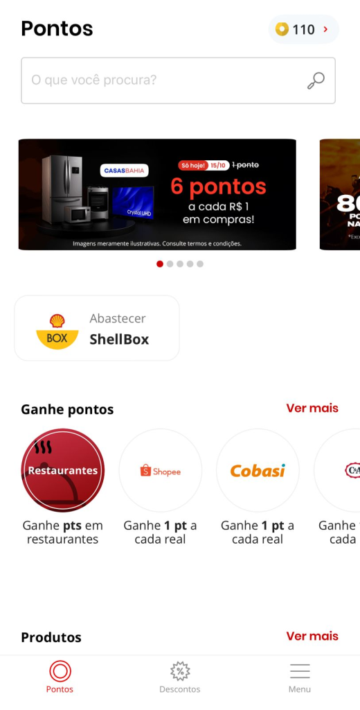 - 1. Ao entrar no Aplicativo, clique em esfera restaurantes, o icone estará em um menu deslizante “Ganhar Pontos” no centro da tela.