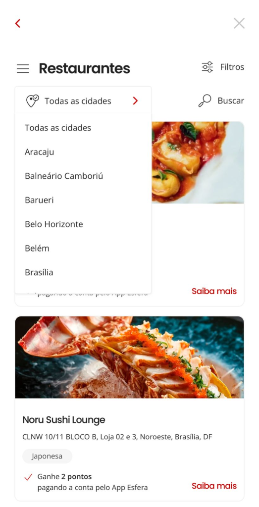 - Cobertura geográfica: Apesar do Esfera Restaurantes estar expandindo as suas fronteiras, sempre é bom verificar se a sua cidade está dentro das cidades elegíveis.