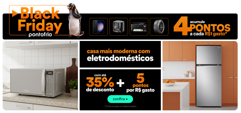Olá, comparador, está precisando trocar seus eletrodomésticos? O Ponto Frio e a Esfera estão em uma parceria, aonde a cada R$ gasto você acumula 5 pontos, ou seja, está na hora de renovar a sua cozinha e, ao mesmo tempo, garantir mais pontos para a sua viagem. Fique e descubra a promoção!