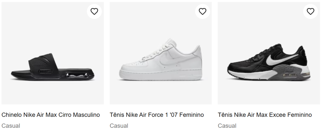- Tênis Nike Air: Se você ama um tênis confortável e estiloso, essa linha é perfeita para você. Além de ser um clássico da marca, os tênis Nike Air são duráveis e garantem aquele toque extra de estilo;