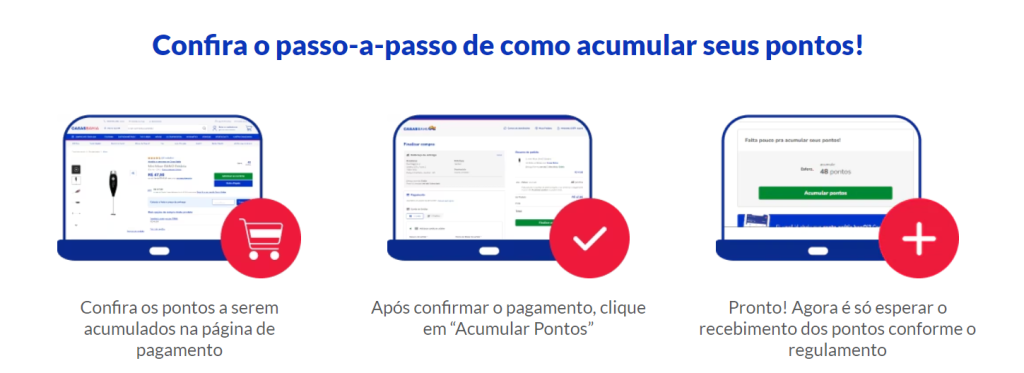 - Para ganhar pontos, clique em “Acumular Pontos” na página de finalização da compra.