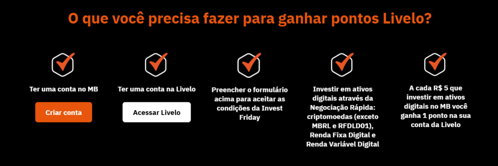 Ao participar da promoção entre Livelo e Mercado Bitcoin, você não só investe em ativos digitais, mas também consegue ótimos benefícios para aproveitar no seu dia a dia. Então não perca tempo, cadastre-se agora, invista e comece a acumular os seus pontos!