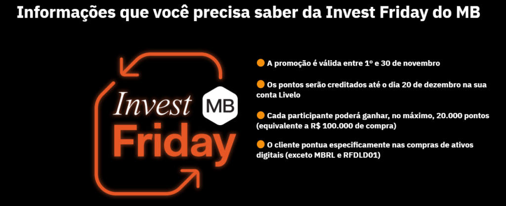 - 📅 Período da promoção: Fique de olho nas datas! A promoção tem um prazo específico (até 30.11.2024) para você realizar os investimentos e garantir seus pontos Livelo;
