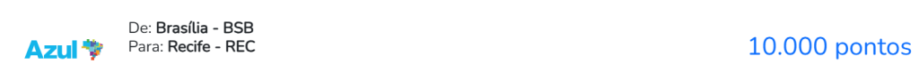 Com 10.000 pontos você pode emitir passagem e fazer uma viagem de avião de Brasilia – BSB para Recife – REC, somente pagando algumas tarifas.