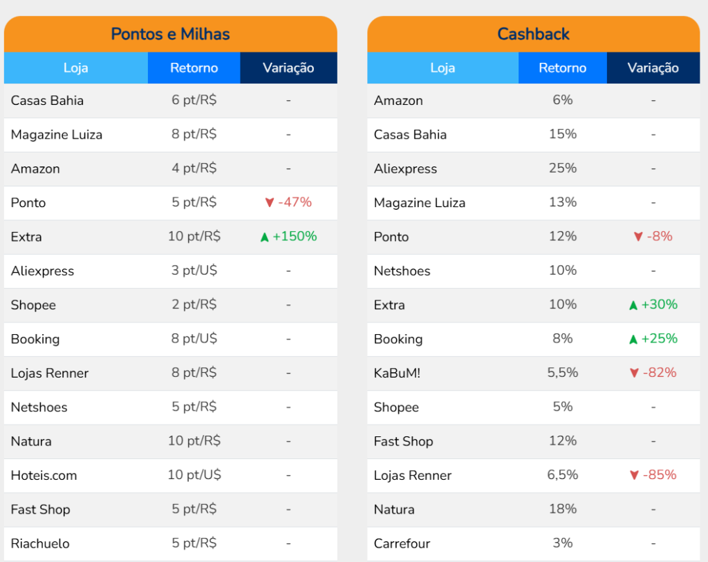 Com o intuito de maximizar sua economia, vale a pena aproveitar plataformas que oferecem cashback. A Comparemania, por exemplo, reúne promoções com retorno em dinheiro e ainda indica quando há ofertas com acúmulo de pontos ou milhas.