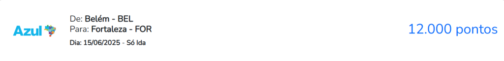 E, ao gastar R$ 2.099,00, acumular 12.594 pontos, que já é o bastante para emitir uma passagem de avião, de Belém – BEL para Fortaleza – FOR, pagando apenas algumas tarifas relacionadas ao embarque.