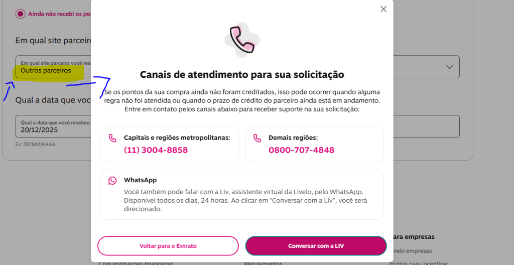 A nova opção foi pensada para situações em que o consumidor realizou a compra em um parceiro da Livelo, cumpriu as regras da oferta, mas a pontuação não foi lançada dentro do prazo informado.
