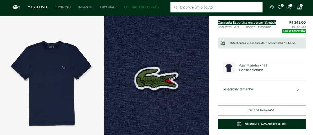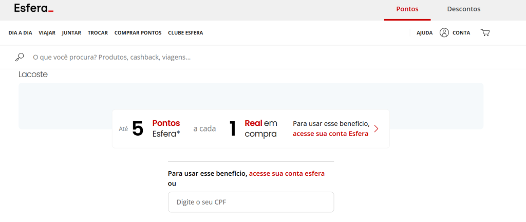 A Lacoste é uma marca de renome internacional, sinônimo de elegância casual e atemporal. A parceria com a Esfera permite que os clientes adquiram as icônicas camisas polo, perfumes, calçados e outros acessórios da marca, ao mesmo tempo em que fortalecem seu saldo de pontos. Para quem valoriza a qualidade e o estilo, essa é a oportunidade perfeita para unir o útil ao agradável. Dessa maneira, ao comprar uma Camiseta Esportiva em Jersey Stretch, por 249,00 é possível acumular pontos.