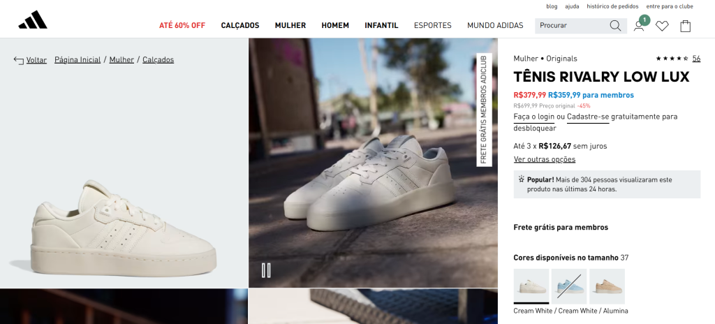 Para os apaixonados por esporte e moda urbana, a entrada da Adidas no programa Esfera é uma notícia espetacular. Por exemplo, ao comprar um item no site da Adidas, vamos supor, um Tênis Rivalry Low Lux, além de já aproveitar a promoção, de R$ 699,99 ele está saindo por R$ 379,99, ainda é possível acumular pontos.