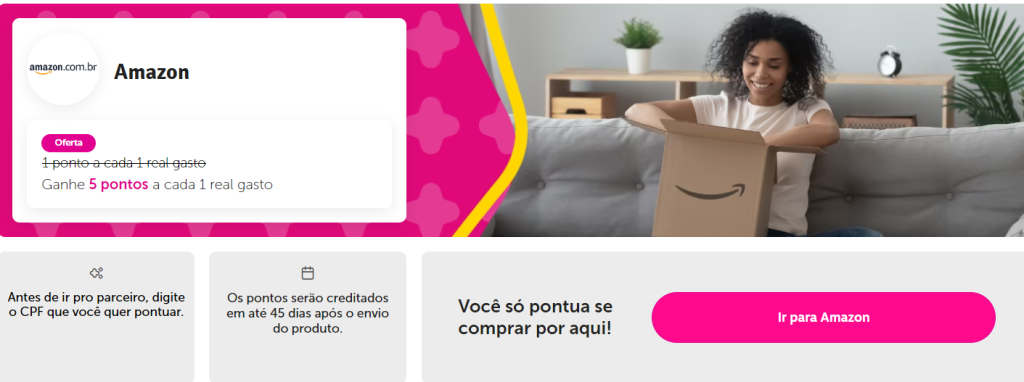 - 5 pontos a cada real gasto – Na loja inteira, exceto para assinaturas.