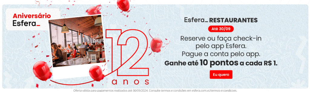 Portanto, se você gosta de frequentar restaurantes nas cidades participantes, essa é uma excelente chance de aumentar os seus pontos no Esfera.