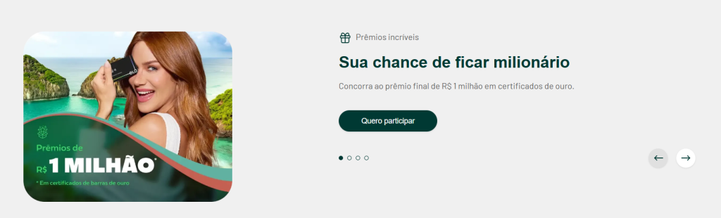 Basicamente, é um programa que transforma suas compras no crédito em números da sorte, dando a você a chance de ser sorteado e viver momentos realmente inesquecíveis — experiências que podem envolver viagens exclusivas, roteiros personalizados, prêmios únicos e até R$ 1.000.000,00 (Um Milhão de Reais).