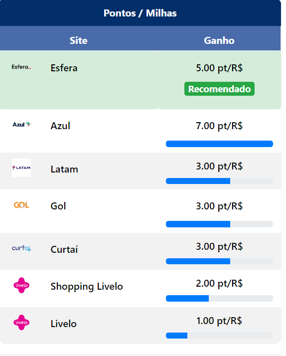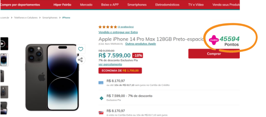 Por exemplo, na compra desse celular em um Coldsite Você pontuaria apenas 2.175 pontos através do cartão de crédito.